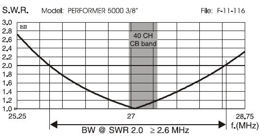 - Bandbreite bei einem SWR von unter 2 max. 2600 Khz (260 Kanäle)