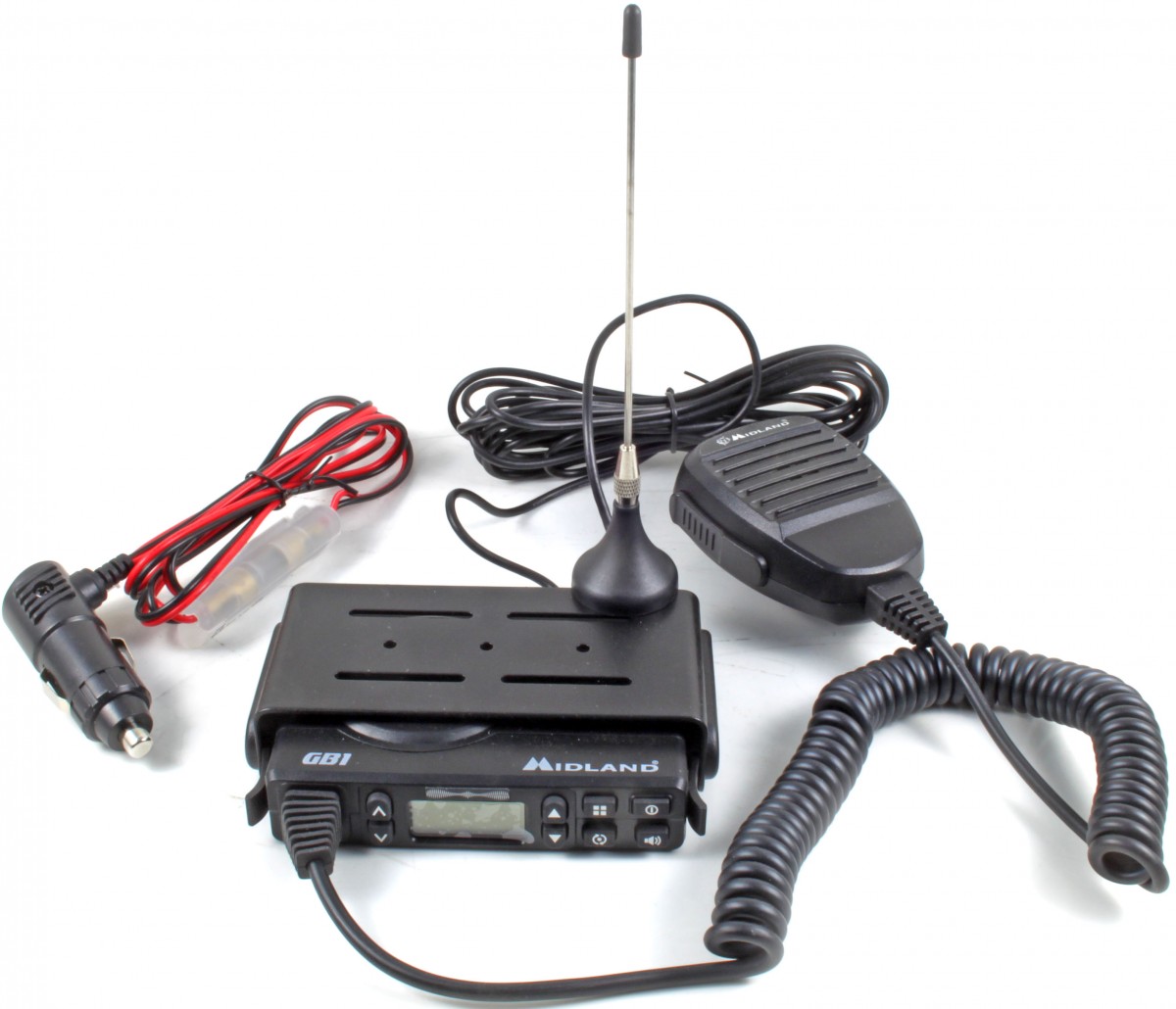 Mit dem GB1 bringt MIDLAND eines der ersten PMR446 Mobilfunkgeräte weltweit auf den Markt. Bedingt durch die entsprechenden Bestimmungen beim PMR446 Funk, ist die mitgelieferte Magnetfußantenne fest mit dem Funkgerät verbunden. Eine 12 Volt DC Stromversorgung ist ebenfalls beim Midland GB1 möglich. Am Stromkabel ist bereits ein Zigarettenanzünderstecker angeschlossen.