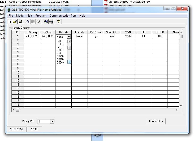 PC-Software PRG-G15 zur Einstellung der Seefunkkanäle, Power Save, VOX, Kanalsuchlauf, Sprachansage, Privatkanäle, etc.